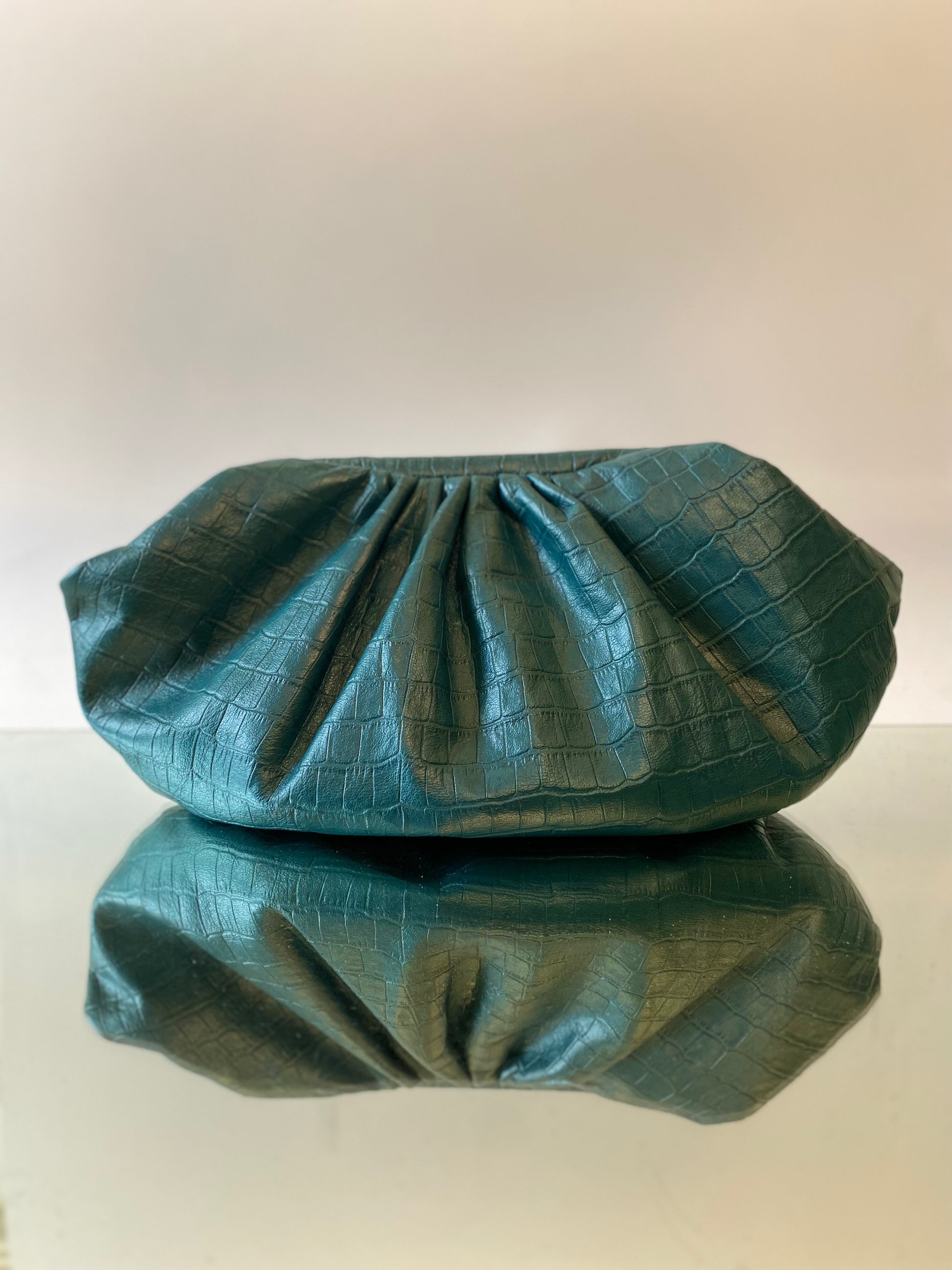 Embrace effortless style with The Cloud Clutch. This statement piece is crafted from genuine, high-quality leather, defined by its artfully ruched silhouette and luxurious metallic (or scaled) texture. Soft, voluminous, and lightweight, it offers sophisticated storage while adding immediate glamour to any look. Perfect for evening events or elevating your daily ensemble.