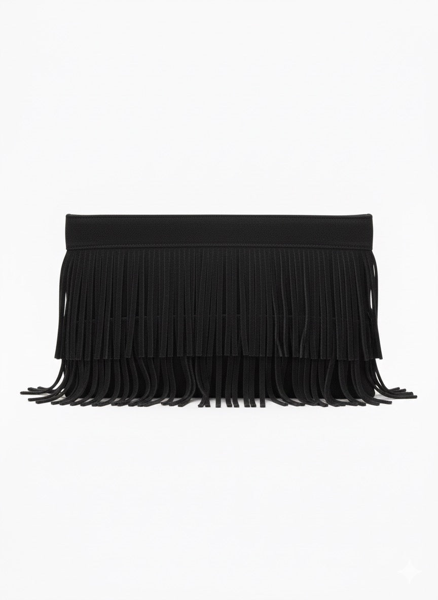 Vera captures the essence of bohemian elegance with its thoughtfully designed clutch silhouette. Adorned with flowing fringe detailing, this piece embodies the free-spirited aesthetic that defines boho style while maintaining sophisticated versatility. The layered fringe movement adds dimension and texture, creating visual depth that complements both casual and dressed-up occasions. Perfect for those who seek accessories that reflect an artistic sensibility and embrace the relaxed luxury of bohemian design.