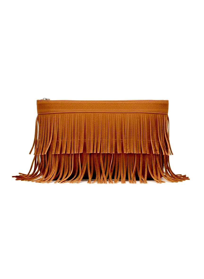 Vera captures the essence of bohemian elegance with its thoughtfully designed clutch silhouette. Adorned with flowing fringe detailing, this piece embodies the free-spirited aesthetic that defines boho style while maintaining sophisticated versatility. The layered fringe movement adds dimension and texture, creating visual depth that complements both casual and dressed-up occasions. Perfect for those who seek accessories that reflect an artistic sensibility and embrace the relaxed luxury of bohemian design.